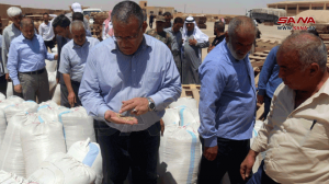 وفي ريف الرقة المحرر تفقد وزير الزراعة قطنا مراكز استلام الحبوب والأراضي المزروعة بالقطن والذرة.