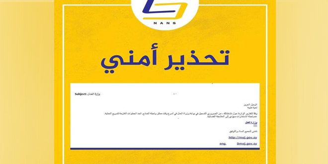 حذر مركز أمن المعلومات في الهيئة الوطنية لخدمات الشبكة من بريد إلكتروني يحتوي على رابط يتم من خلاله تحميل ملف يحتوي على برمجية خبيثة تهدف إلى اختراق نظم تشغيل “ويندوز”.