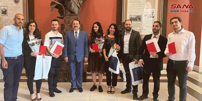 بدوره أعرب السفير حداد عن تهانيه للطلبة السوريين الخريجين لهذا العام ومنهم حاصلون على درجة امتياز منوهاً بمستوى التعاون المميز في المجال التعليمي والثقافي بين سورية وروسيا والذي تتعمق أواصره عاماً بعد عام.