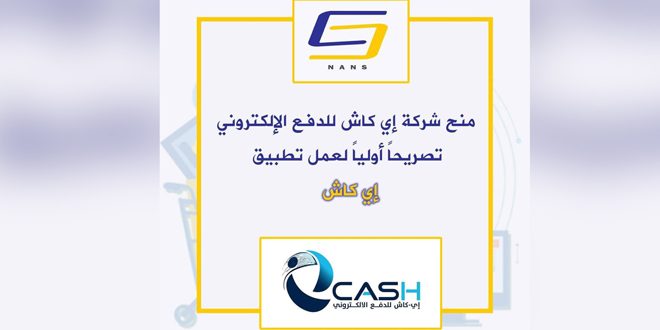 منحت الهيئة الوطنية لخدمات الشبكة تصريح عمل أولياً لشركة (إي كاش) على تطبيقها (ماي إي كاش) الخاص بالدفع الإلكتروني.