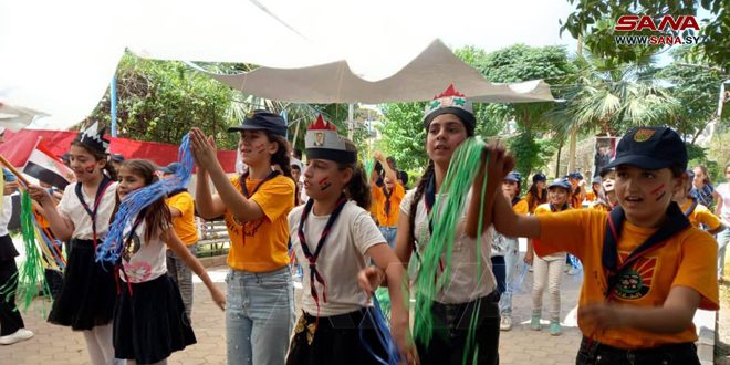 وضمت الأنشطة التي اختتمت المعسكر الصيفي لفرع الطلائع معرضاً للأطفال المشاركين احتوى مجسمات هندسية ولوحات فنية ورسومات إضافة لألعاب رياضية.