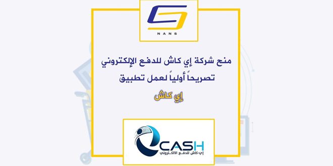 منحت الهيئة الوطنية لخدمات الشبكة تصريح عمل أولياً لشركة (إي كاش) على تطبيقها (ماي إي كاش) الخاص بالدفع الإلكتروني.