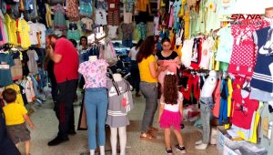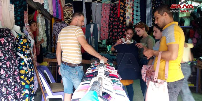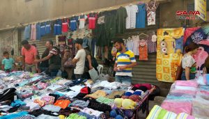 كما تتواجد الخياطة سمر القادمة من الشيخ بدر في السوق لاقتناء حاجيات عملها الذي يزداد في فترة ما قبل العيد لكون العديد من الأشخاص باتوا يقومون بإصلاح ملابسهم وإعادة تصميمها في بعض الاحيان لأنها الوسيلة الأنسب للتأقلم مع ارتفاع أسعار الملابس حسب وصفها.