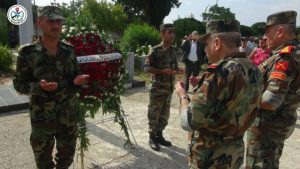 وبهذه المناسبة أيضاً قام قادة المناطق العسكرية بزيارة مثاوي الشهداء ووضعوا أكاليل من الزهر باسم السيد الرئيس الفريق بشار الأسد القائد العام للجيش والقوات المسلحة على النصب التذكارية للشهداء وقرأوا الفاتحة وأدوا التحية إجلالاً وإكباراً لأرواحهم الطاهرة كما قاموا بزيارة جرحى الجيش العربي السوري في المشافي العسكرية وقدموا التهاني وتمنوا لهم الشفاء العاجل والصحة والعافية.