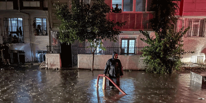 ونقلت وكالة (الأناضول) الناطقة باسم النظام التركي عن محافظ إسطنبول علي يرلي قايا قوله: إن 128 منزلاً وثلاثة مصانع إضافة إلى العديد من المنشآت تضررت من جراء السيول الناجمة عن هطول أمطار غزيرة في منطقة (اسنيورت) في الشطر الأوروبي من المدينة.