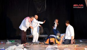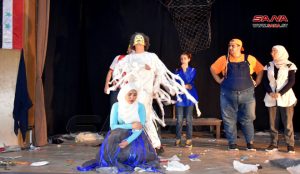 وتناول العرض رسائل تربوية وتعليمية للصغار من تأليف وإخراج يوسف شموط الذي أوضح لمراسلة سانا أن العرض الذي شارك فيه أحد عشر ممثلا وممثلة يحكي عن أهمية النظافة والعلم في مكافحة الأمراض ضمن مدينة أهمل أهلها نظافتها ونظافتهم الشخصية وكثرت فيها الأوساخ والأمراض.