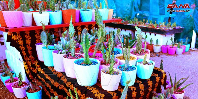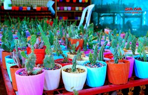 مجموعة واسعة من نباتات الشوكيات والعصاريات المتنوعة تزين أجنحة معرض الزهور بدورته الـ 42 المقام حالياً في حديقة تشرين وهي نتاج مشاريع صغيرة مدرة للدخل لعدة شباب تستقطب الزوار وتجذبهم للشراء.