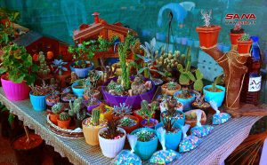 وأضاف الأيوبي: “إنه لا يكتفي ببيع منتجاته لزوار المعرض والأصدقاء إنما يتواصل معهم ويرشدهم إلى طرق الزراعة والعناية الصحيحة بالنباتات كما أنه طور مشروعه بإضافة الخشب إلى عمله عبر تزيينه بالشوكيات والعصاريات كالشلالات والأكواخ وغيرها مختتماً حديثه بالإشارة إلى طموحاته المستقبلية بالتوسع في مشروعه أكثر”.