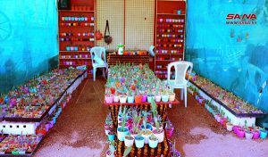 ومن مدينة القطيفة بريف دمشق يشارك الشاب براء الكردي بعرض وبيع منتجاته من الشوكيات والعصاريات في أحد أجنحة المعرض مبينا لـ سانا الشبابية أن مشاركته هي الأولى ولا سيما أن مشروعه حديث العهد حيث يضع الشوكيات في علب ملونة لجذب الزوار لزيارة الجناح وشراء ما يلزمهم منها لتقديمها على شكل هدايا.