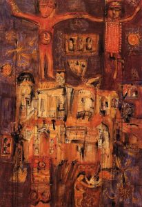 الزيات الذي قام بتزيين العديد من الكنائس في سورية بالأيقونات والجداريات وحصل على الجائزة الدولية التقديرية بحفل أقيم في مكتبة الأسد الوطنية عام 2013 يجد في فكر الأيقونة وفكر الأسطورة وفكر جبران ثالوثاً تنبع منه طريقته في الرسم فكان (تحية إلى جبران) عنوان معرضه الذي احتوى على خمس عشرة لوحة متضمنة مقاطع ونصوصاً من كتابات جبران بأسلوب فني تمايل ما بين الحرف واللون في بناء تشكيلي متنوع.