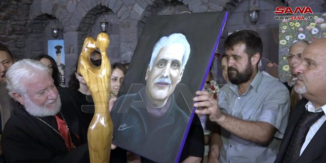 ورسم الفنان نضال إبراهيم لوحة بورتريه للفنان الراحل تقديراً لمسيرته الإبداعية والفنية كما شارك بلوحة الجامع ضمن مشروعه التوثيقي لآثار حمص القديمة.