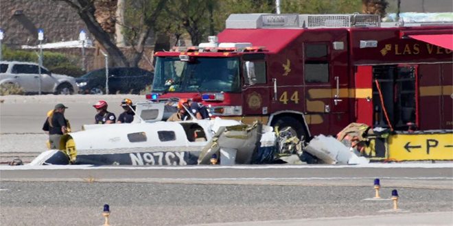 ونقلت قناة فوكس نيوز الأمريكية عن شرطة الولاية قولها في بيان: إن “طائرتين خفيفتين اصطدمتا في مطار هاري ريد في لاس فيغاس ما أسفر عن مصرع أربعة أشخاص” مشيرة إلى أن المجلس الوطني لسلامة النقل وإدارة الطيران الفيدرالية الأمريكية يشارك في التحقيق لمعرفة ملابسات الحادث.