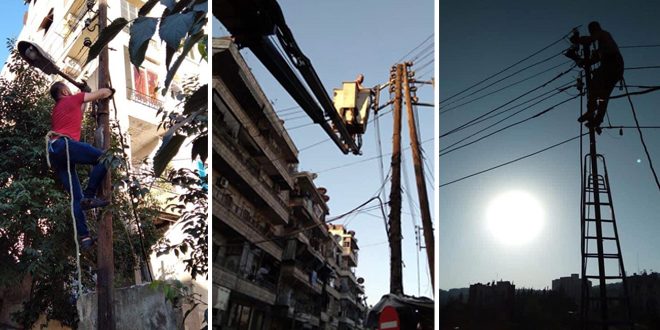 وبين مدير الشركة المهندس محمد الحاج عمر لمراسل سانا أن عمل الشركة مستمر وفق خطتها لإعادة تأهيل وترميم المراكز المتضررة جراء الإرهاب حيث يتم العمل في أحياء الشعار وكرم اللوز والمشاطية لإعادة تأهيل شبكات التوتر المنخفض والمتوسط وإيصال التغذية الكهربائية إليها لافتاً إلى أن عدد المراكز التحويلية التي تمت إعادة تأهيلها ووضعها بالخدمة في محافظة حلب منذ تحريرها من الإرهاب وحتى اليوم بلغ 2150 مركزاً تحويلياً من أصل 11 ألف مركز تحويلي كانت قيد الخدمة وبلغ عدد المراكز المدمرة 4 آلاف مركز وحالياً يتم العمل على إعادة تأهيل 1850 مركزاً تحويلياً بالمدينة والريف.
