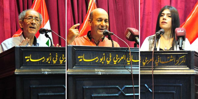 مواضيع إنسانية ووطنية غلب عليها الانطباع الذاتي والوجداني تضمنها المهرجان الشعري الذي نظمه فرع إدلب لاتحاد الكتاب العرب بالتعاون مع مديرية الثقافة-المركز الثقافي العربي بأبو رمانة بمشاركة عدد من الشعراء.