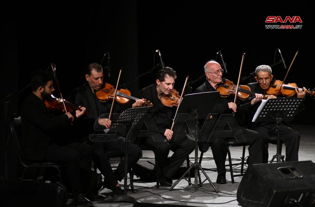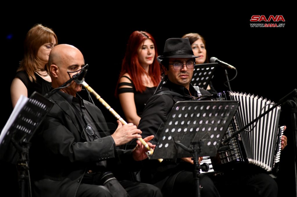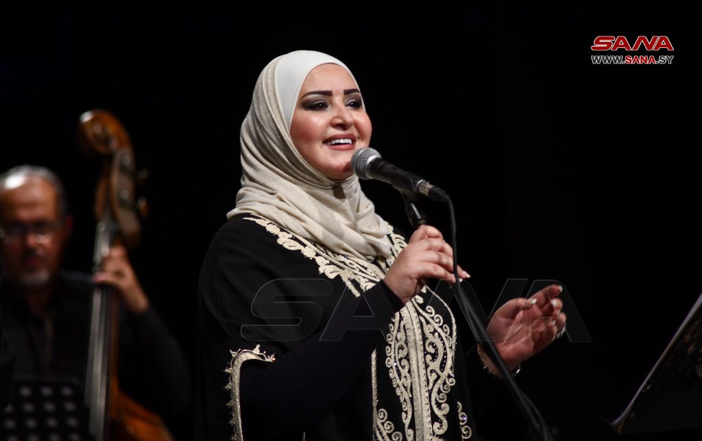 وتألقت المطربة فاتن صيداوي بأغنية “يا سورية بحييكي” من كلمات وألحان الفنان ربيع بغدادي أما الكورال فأدى أغنية “يا سالمة” للفنان فهد بلان واختتمت الأمسية بأوبريت بساط الريح.