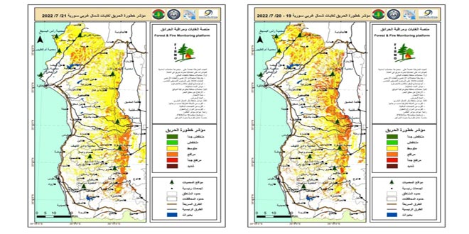 وأشارت قرموقة إلى أنه يمكن الإبلاغ عن أي نار أو دخان على الأرقام المجانية 188 و113 لافتةً إلى أنه يتم إعداد الخرائط بالتعاون مع المديرية العامة للأرصاد الجوية ووزارة الزراعة والإصلاح الزراعي-مديرية الحراج.