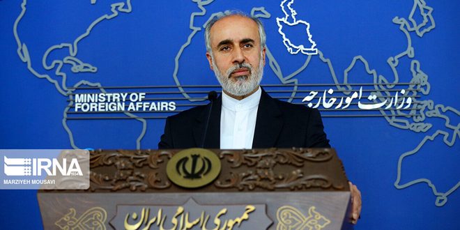 جدد المتحدث باسم وزارة الخارجية الإيرانية ناصر كنعاني تأكيده ضرورة إنهاء الوجود العسكري الأمريكي شمال شرق سورية والتوقف عن دعم الإرهابيين.