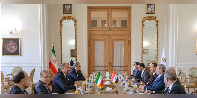 بحث وزير الخارجية والمغتربين الدكتور فيصل المقداد مع نظيره الإيراني حسين أمير عبد اللهيان في طهران اليوم العلاقات الثنائية بين البلدين الصديقين وسبل تطويرها في المجالات كافة إضافة إلى التطورات الإقليمية والدولية ذات الاهتمام المشترك.