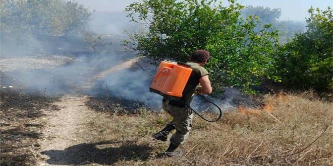 أخمد عناصر الإطفاء في اللاذقية اليوم 13 حريقاً في مناطق متفرقة بالمحافظة .