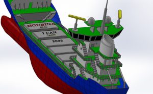 المهندس حسن خريج جامعة تشرين اختصاص هندسة التصميم الميكانيكي والإنتاج أطلق اسم والدته (مبينة عبد الله) على أحدث تصاميمه وهو مجسم مصغر باسم (سفينة مبينة) التجارية صممها بنفسه على برنامج (سوليدووركس) للتصميم الهندسي ليطبقها على أرض الواقع ثم يصنع نموذجاً ترفيهياً منها يعمل بالدفع الكهربائي قابلاً للتحكم لاسلكياً حيث يبلغ طول النسخة الأولى من مجسم السفينة 98 سنتيمتراً وعرضها 19 سنتيمتراً وارتفاعها 38 سنتيمتراً.