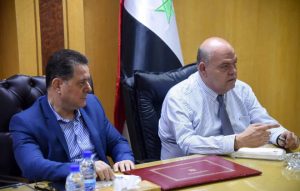 بحث وزيرا التجارة الداخلية وحماية المستهلك الدكتور عمرو نذير سالم والأشغال العامة والإسكان المهندس سهيل عبد اللطيف مراحل العمل في مشروع إعادة ترميم وتأهيل صومعة الحبوب في مرفأ طرطوس وضرورة توحيد وتكثيف الجهود والعمل كفريق واحد من الطرفين لإعادتها للعمل.
