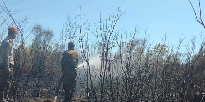 أخمدت عناصر دائرة الحراج في مديرية زراعة اللاذقية اليوم حريقين تسببت بهما قذائف صاروخية أطلقتها التنظيمات الإرهابية وسقطت في محيط بلدة ربيعة في ريف اللاذقية الشمالي.