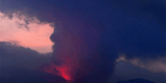 ونقلت رويترز عن هيئة الأرصاد اليابانية قولها إن درجة التحذير من ثورة البركان ارتفعت إلى 5 درجات وهو أعلى مستوى من التحذير ونصحت السلطات بعض المناطق بالإخلاء.