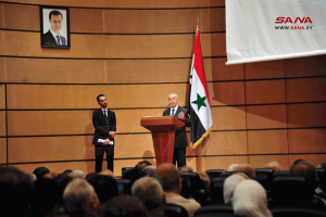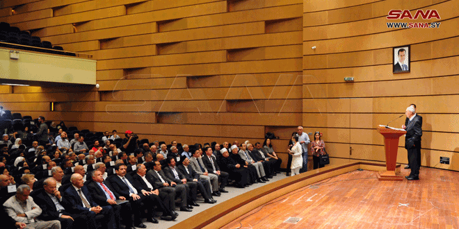 وفي كلمة فصائل المقاومة الفلسطينية لفت الأمين العام لجبهة النضال الشعبي الفلسطيني خالد عبد المجيد إلى المسؤولية القومية التي تضطلع فيها سورية تجاه القضية الفلسطينية والتضحيات التي قدمتها في سبيل فلسطين.