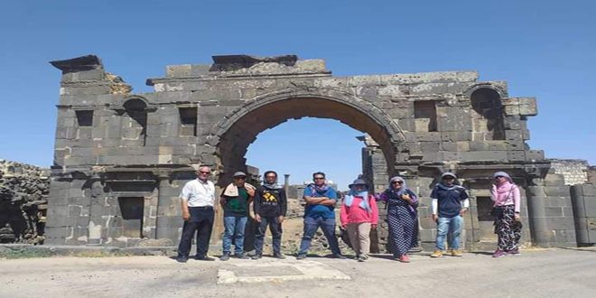 زارت مجموعة سياحية من الجنسية الماليزية اليوم مدينة بصرى الشام للاستمتاع بجمال المواقع الأثرية فيها والاطلاع على المغرق في القدم.