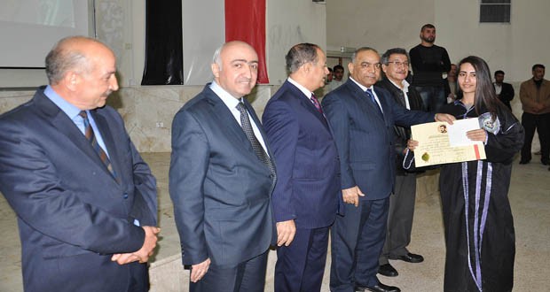 كرمت كلية العلوم بجامعة البعث اليوم 57 طالبا وطالبة من المتفوقين بمختلف السنوات الدراسية والخريجين للعام الدراسي 2013 -2014 على المدرج الأول في الكلية .