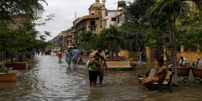 أعلنت باكستان حالة طوارئ مناخية في مدينة كراتشي بسبب استمرار هطول الأمطار الغزيرة المترافقة مع الرياح الموسمية التي أدت إلى إغراق عدد كبير من منازلها وطرقاتها.