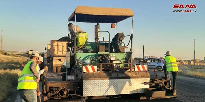 باشر فرع المواصلات الطرقية في محافظة حماة عمليات تأهيل وصيانة الطريق الدولي دمشق حلب المتضرر من الإرهاب ضمن قطاع محافظة إدلب في الريف المحرر.