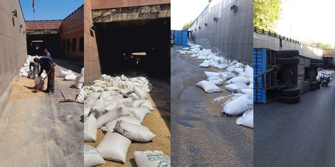 أدى تدهور شاحنة قاطرة ومقطورة محملة بمادة علفية داخل نفق العباسيين في دمشق إلى أضرار مادية.