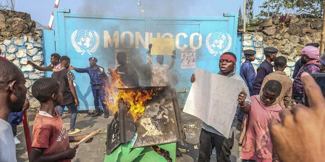 أعلنت السلطات في جمهورية الكونغو الديمقراطية مقتل ثلاثة جنود من قوات حفظ السلام الدولية وسبعة مدنيين خلال احتجاجات مناهضة للأمم المتحدة شرق البلاد.