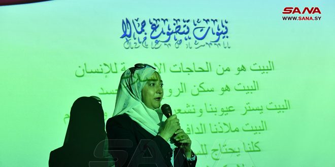واستهلت حموش ندوتها بالرجوع للبدايات الأولى لبناء البيوت في التاريخ حيث أوضحت أن المدن والحضارات السورية كانت سباقة في فنون العمارة مثل “إيبلا وماري وأوغاريت” صاحبة أول مشروع ري وصرف صحي في التاريخ وصولاً إلى البيوت الدمشقية وعمارتها وخصائصها.