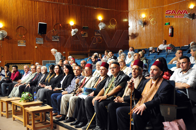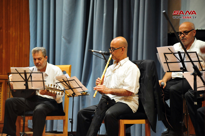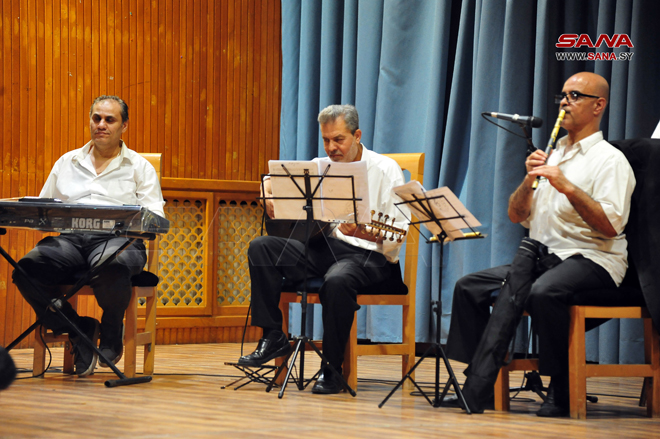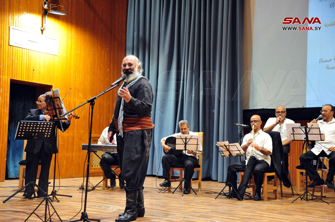 وقدمت فرقة التخت الشرقي موشح “امسكت قلبي” للشاعر الحلبي إضافة إلى فقرات مونولوج وأهازيج حملت طابعاً إنسانياً ووجدانياً بصوت الفنان الممثل باسل فتال إضافة إلى مونولوج الطربوش قدمها أعضاء فرقة البيت الدمشقي.