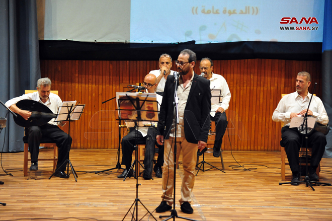 مجموعة من الأغاني الوطنية والأهازيج والموشحات قدمها المشاركون في ملتقى الشعر الغنائي الذي نظمته مديرية الثقافة على خشبة مسرح المركز الثقافي العربي في كفرسوسة.