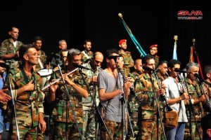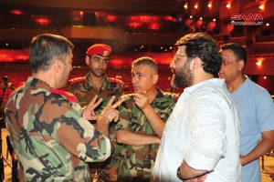 موسيقيو سورية الذين ينتمون لأعرق المؤسسات الأكاديمية وأهم الفرق الموسيقية الاحترافية وضعوا لمساتهم الأخيرة للاحتفالية التي تقيمها يوم غد الفرقة الوطنية السورية للموسيقا العربية بقيادة عميد المعهد العالي للموسيقا المايسترو عدنان فتح الله بالتعاون بين وزارتي الثقافة والدفاع على خشبة مسرح الأوبرا بدار الأسد للثقافة والفنون تقديراً لبطولات رجال الجيش السوري وتضحيات جرحاه وتحية لأرواح شهدائه الأبرار.