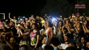 حط مهرجان القلعة والوادي رحاله في ربوع قلعة الحصن اليوم ليختتم فعالياته بحفل غنائي للفنان عماد رمال حضره جمهور كبير وعدد من جرحى الجيش العربي السوري قدم خلاله مجموعة من الأغاني الوطنية والشعبية والتراثية.