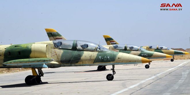 كاميرا سانا تابعت ميدانياً التدريب اليومي للمقاتلين والأعمال الفنية لتجهيز الطائرات لتبقى على أتم الاستعداد لتنفيذ أي مهمة للذود عن سياج الوطن حيث بين المقاتل والفني علي أنه يعمل مع زملائه الفنيين على صيانة الطائرة حسب خطة التدريب وتجهيزها للطيار بكامل عتادها لاستخدامها في الأعمال التدريبية في الكلية الجوية للطلاب الضباط وتخريجهم ليكونوا طيارين وفنيين وملاحين بكفاءة عالية منوهاً بدور هذه الطائرة وأثرها الكبير في حماية مطار كويرس العسكري ومدينة حلب ولمدة تتجاوز العشر سنوات من المجموعات الإرهابية المسلحة واليوم يواصل التدريب مع زملائه ليكونوا على أهبة الاستعداد للدفاع عن الوطن.