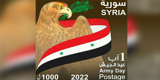 أصدرت المؤسسة السورية للبريد طابعاً تذكارياً بمناسبة عيد الجيش العربي السوري الذي يصادف في الأول من آب من كل عام.