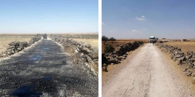 أنهت مديرية الخدمات الفنية في درعا صيانة طريق زراعي في بصرى الشام بطول يصل إلى 1500 متر.