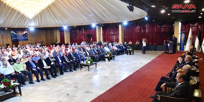 الأمين العام المساعد لحزب البعث العربي الاشتراكي المهندس هلال الهلال أكد في كلمته أن القطاع الحرفي من أكثر القطاعات معرفة بما يتعرض له الشعب السوري من عدوان متمثل حالياً بالتضييق والحصار الشامل للحياة وأكثر دراية بالمواجهة وابتكار أساليبها وأدواتها لكونه الأكثر انتشاراً وإبداعاً والأكثر تعبيراً عن الحياة في المجتمع.