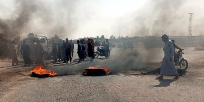 وبينت المصادر أن أهالي بلدتي الطيانة والعزبة خرجوا في مظاهرات ضد ميليشيا “قسد” وقاموا بقطع الطرقات وإحراق إطارات السيارات في شوارع البلدتين مطالبين بوقف عمليات اختطاف الأطفال والشبان وخروج ميليشيا “قسد” والاحتلال الأمريكي من المنطقة.