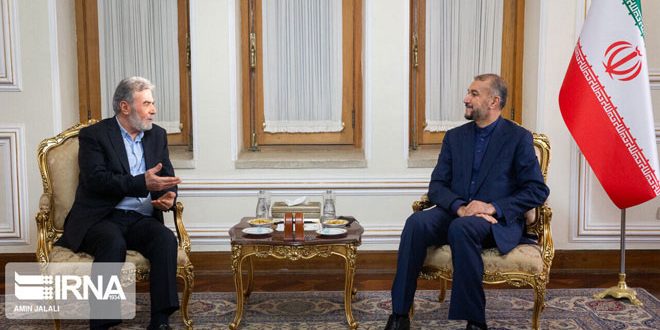 وأشار عبد اللهيان خلال لقائه في طهران الأمين العام لحركة الجهاد الفلسطينية زياد النخالة إلى الهزائم التي تلقاها الكيان الصهيوني والولايات المتحدة أمام المقاومة مشدداً على أن تعزيز التقارب بين الدول الإسلامية يفشل الأعداء في التأثير على القضية المقدسة وهي تحرير فلسطين والقدس الشريف.