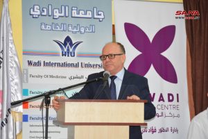 انطلقت اليوم فعاليات مؤتمر الوادي للأطباء السوريين في الوطن والمهجر بمشاركة عدد كبير من الأطباء باختصاصات مختلفة من بلدان أميركا وفرنسا وألمانيا وبريطانيا والإمارات والسعودية إضافة لمشاركة الجامعات السورية وذلك في جامعة الوادي الدولية الخاصة بمنطقة وادي النضارى بحمص.