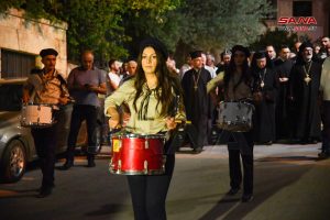 كما قدمت فرقة مراسم رعية آجيا صوفيا للروم الملكيين الكاثوليك عزفاً موسيقاً أثناء الطواف وفي ساحة العين وسط حضور كبير من الأهالي والضيوف.
