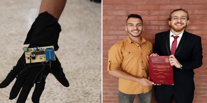 بهدف مساعدة الأشخاص المكفوفين على تعلم لغة بريل نجح المهندسان الشابان موفق فرهود وأسامة رشوان بتصميم قفاز يسهم بتقديم تجربة القراءة لهم بشكل ذاتي بعيداً عن الكتب الصوتية ومساعدة أشخاص آخرين.