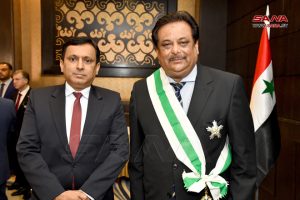 منح السيد الرئيس بشار الأسد السفير سعيد محمد خان وسام الاستحقاق السوري من الدرجة الممتازة تكريماً لجهوده في تنمية وتطوير العلاقات السورية الباكستانية وتقديراً لتفانيه في أداء مهامه سفيراً لبلاده في سورية.