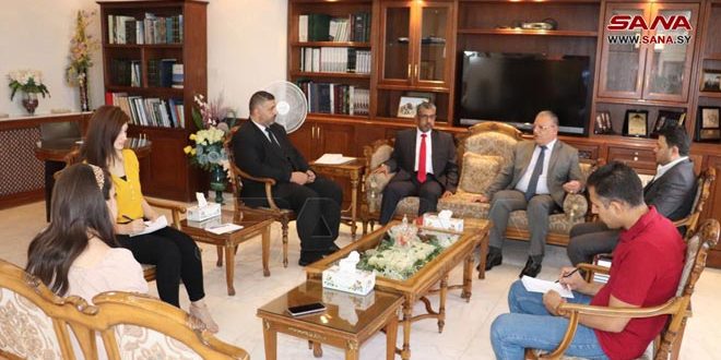 بحث وزير الزراعة والإصلاح الزراعي المهندس محمد حسان قطنا اليوم مع القائم بأعمال سفارة دولة الإمارات العربية المتحدة بدمشق المستشار عبد الحكيم ابراهيم النعيمي آفاق التعاون المستقبلي في المجال الزراعي والتبادل التجاري الزراعي.